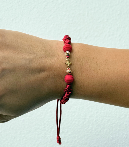 Manilla artesanal elaborada con balines de oro 18k. Diseño elegante para uso diario.