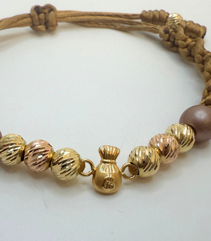Manilla artesanal elaborada con balines de oro 18k .Diseño elegante para uso diario.