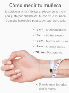 • Con cinta métrica: Rodea tu muñeca sin apretar y anota los cm.