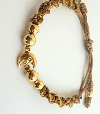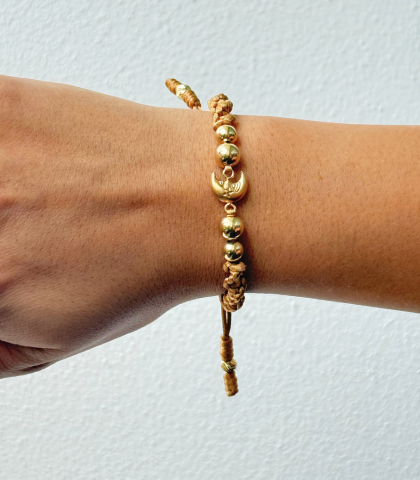 Manilla artesanal elaborada con balines de oro 18kDiseño elegante para uso diario.