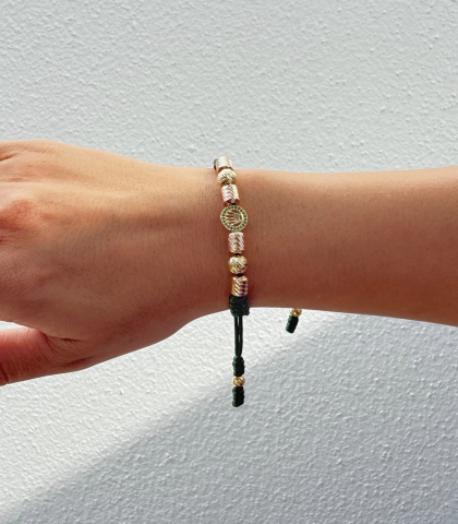Manilla artesanal elegante con balines de oro 18k .Diseño elegante para uso diario.