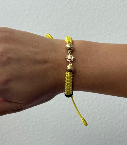 Manilla artesanal elaborada con balines de oro 18k. Diseño elegante para uso diario.