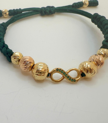 Manilla artesanal elaborada con balines de oro de 18k .Diseño elegante para uso diario.